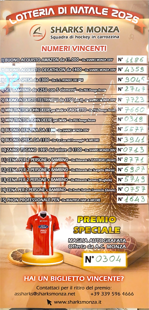 Se sei in possesso di un biglietto vincente contattaci al numero: 339 596 4666